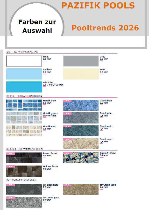 ORIENTIERUNG-ÜBERSICHT Stahlwandpools der Pazifik-Reihe: